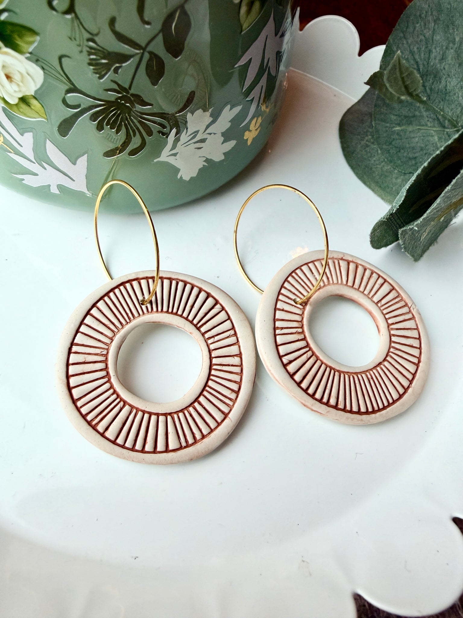 These dangle earrings are made from a lightweight polymer clay. Free shipping!